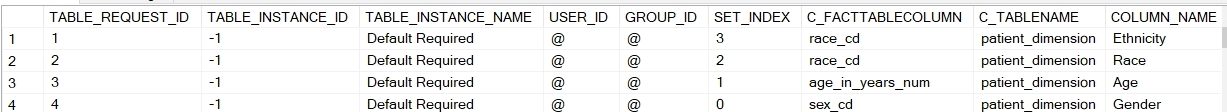 There are 4 patient_dimension default concepts that are loaded into the RPDO_TABLE_REQUEST which are required. These are: race_cd (ethnicity), reace_cd(race), age_in_years_num, sex_cd and gender