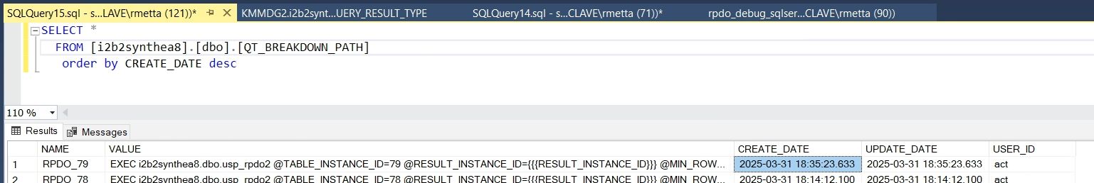 Qt_breakdown_path logs the table definition value and the result_instance_id. to be associated with the ptset. query.