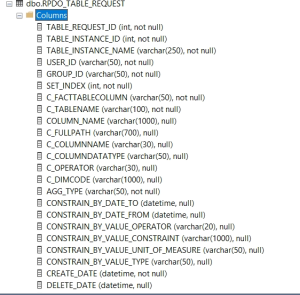 Any other user created concepts in the data table design will be stored in the RPDO_TABLE_REQUEST. Below is the list that correspond to values in the Data Table